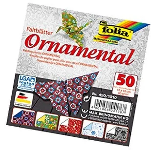 Folia składane papierowe arkusze ozdobne do Origami o gramaturze 80 g/m2, 50 arkuszy posortowanych w 5 motywach., 10 x 10 cm