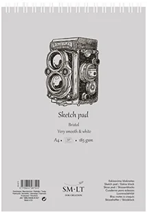 SM.LT EB-50TS Authentic Line A4 szkicownik i gładkie Bristol, 50 arkuszy papieru, z perforacją, recyklingowej pokrywka, z podwójnym zamkiem spirala, 185 GSM wyjątkowo Biały EB-50TS