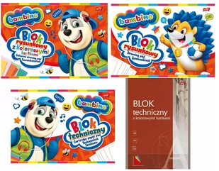 Blok rysunkowy Bambino 20 białych kartek A4 Unipap Blok rysunkowy Bambino 16 kolorowych kartek A4 Unipap Blok techniczny Bambino 10 białych kartek A4 Unipap Blok techniczny 10 kolorowych kartek A4 Unipap Blok rysunkowy Bambino 20 białych kartek A4 Unipap: