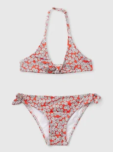Bikini w kolorze czerwonym - właściwości: szybkoschnący materiał - ramiączka: na szyję - elastyczna taśma pod biustem - pas / ściągacz: elastyczny - wycięcia nogawek: elastyczne - klin: tak - wzór: na całości