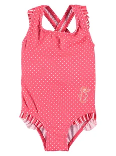 Dziewczęcy jednoczęściowy strój kąpielowy to urocza propozycja na letnie dni. Wykonany w 80% z poliamidu i w 20% z elastanu, zapewnia doskonałe dopasowanie i komfort noszenia. Różowy strój zdobią drobne kropeczki, które dodają mu delikatnego uroku. Ozdobna falbanka nadaje strojowi dziewczęcego charakteru. Na plecach znajduje się ozdobne wycięcie, które nie tylko dodaje stylu.