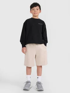 Spodenki dresowe chłopięce idealnie sprawdzą się jako element zarówno casualowych, jak i sportowych stylizacji na co dzień. Posiadają oversizowy krój, który luźno układa się na sylwetce i zapewnia swobodę oraz krótkie nogawki do połowy uda. Dziecięce spodenki dresowe są wykonane w 70% z bawełny, dzięki czemu są miękkie, trwałe i przyjemne w dotyku. Dodatek poliestru (30%) sprawia, że materiał utrzymuje fason i jest odporny na zużycie nawet przez wiele sezonów. Dzianina dresowa french terry z jednej strony jest gładka, natomiast z drugiej posiada widoczny splot w postaci pętelki.
