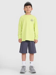 Spodenki dresowe chłopięce idealnie sprawdzą się jako element zarówno casualowych, jak i sportowych stylizacji na co dzień. Posiadają oversizowy krój, który luźno układa się na sylwetce i zapewnia swobodę oraz krótkie nogawki do połowy uda. Dziecięce spodenki dresowe są wykonane w 70% z bawełny, dzięki czemu są miękkie, trwałe i przyjemne w dotyku. Dodatek poliestru (30%) sprawia, że materiał utrzymuje fason i jest odporny na zużycie nawet przez wiele sezonów. Dzianina dresowa french terry z jednej strony jest gładka, natomiast z drugiej posiada widoczny splot w postaci pętelki.