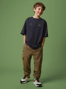 Codzienna wygoda z dodatkowymi kieszeniami Regularny krój zapewnia swobodę ruchu i naturalne dopasowanie Regulowany pas ze sznurkiem łatwo dopasowujesz obwód do sylwetki dziecka Kieszenie boczne i cargo dodatkowe miejsca na drobiazgi i chłopięce skarby Ściągacze przy nogawkach pomagają utrzymać spodnie na miejscu i dodają sportowego charakteru Wnętrze bez podszycia lekkie i przewiewne, odpowiednie na cieplejsze dni Spodnie dresowe cargo chłopięce na aktywne dni Te spodnie dresowe cargo chłopięce zostały stworzone z myślą o ruchu, zabawie i codziennych przygodach. Regularny krój zapewnia swobodę i naturalne dopasowanie, dzięki czemu spodnie nie krępują ruchów podczas biegania, jazdy na rowerze czy zabawy na świeżym powietrzu. Regulowany pas ze sznurkiem pozwala łatwo dopasować spodnie do sylwetki dziecka i utrzymać je na właściwym miejscu przez cały dzień. Kieszenie boczne oraz kieszenie cargo dają dodatkową przestrzeń na drobiazgi i wszystkie chłopięce skarby, które warto mieć pod ręką. Ściągacze przy nogawkach pomagają utrzymać spodnie na miejscu i nadają im sportowego charakteru.