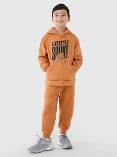 Spodnie dresowe joggery chłopięce idealnie sprawdzą się jako element zarówno casualowych, jak i sportowych stylizacji na co dzień. Posiadają krój regular, który wygodnie dopasowuje się do sylwetki oraz zwężane nogawki zakończone elastycznym ściągaczem. Splot single jersey z jednostronną gładką powierzchnią sprawia, że są one elastyczne i komfortowe w noszeniu. Dresy młodzieżowe wykonane z dzianiny o średniej gramaturze 240 gsm, która sprawia, że są one miękkie oraz bardziej przewiewne. Dziecięce spodnie dresowe są wykonane w 70% z bawełny, dzięki czemu są miękkie, trwałe i przyjemne w dotyku.