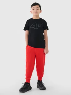 Spodnie dresowe joggery chłopięce idealnie sprawdzą się jako element zarówno casualowych, jak i sportowych stylizacji na co dzień. Posiadają krój regular, który wygodnie dopasowuje się do sylwetki oraz zwężane nogawki zakończone elastycznym ściągaczem. Dresy 4F dla chłopaka wykonane z dzianiny o średniej gramaturze 260 gsm, która sprawia, że są one miękkie oraz bardziej przewiewne. Dresy 4F dla chłopaka są wykonane w 78% z bawełny, dzięki czemu są miękkie, trwałe i przyjemne w dotyku. Dodatek poliestru (22%) sprawia, że materiał utrzymuje fason i jest odporny na zużycie nawet przez wiele sezonów.