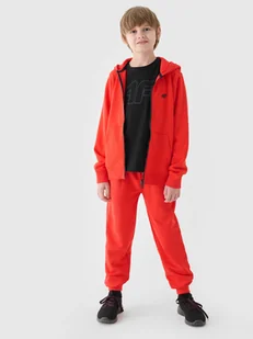 Spodnie dresowe chłopięce idealnie sprawdzą się jako element zarówno casualowych, jak i sportowych stylizacji na co dzień. Posiadają krój regular, który wygodnie dopasowuje się do sylwetki oraz zwężane nogawki zakończone elastycznym ściągaczem. Dzianina dresowa french terry z jednej strony jest gładka, natomiast z drugiej posiada widoczny splot w postaci pętelki. Dzianina w tym splocie jest miękka, bardziej lejąca i cieńsza w dotyku. Dresy 4F dla chłopaka wykonane z dzianiny o średniej gramaturze 280 gsm , która sprawia, że są one miękkie oraz bardziej przewiewne.