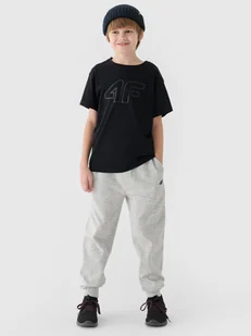 Spodnie dresowe chłopięce idealnie sprawdzą się jako element zarówno casualowych, jak i sportowych stylizacji na co dzień. Posiadają krój regular, który wygodnie dopasowuje się do sylwetki oraz zwężane nogawki zakończone elastycznym ściągaczem. Dzianina dresowa french terry z jednej strony jest gładka, natomiast z drugiej posiada widoczny splot w postaci pętelki. Dzianina w tym splocie jest miękka, bardziej lejąca i cieńsza w dotyku. Dresy 4F dla chłopaka wykonane z dzianiny o średniej gramaturze 280 gsm , która sprawia, że są one miękkie oraz bardziej przewiewne.