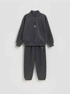Komplet składający się z bluzy i spodni, wykonany z bawełnianej dzianiny.
