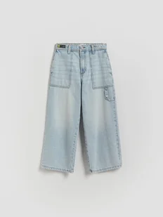Jeansy o swobodnym fasonie, wykonane z bawełnianej tkaniny.