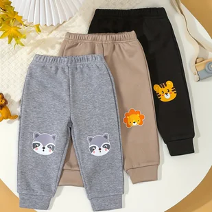 TEMU Jesień- Spodnie Dresowe dla Chłopców 3 szt. z Uroczym Nadrukiem Zwierząt, Idealne na Zewnątrz