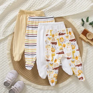 TEMU Zestaw czterech par chłopięcych spodni dresowych dla noworodków: miękkie, wygodne, uniwersalne, modne, jednolite lub w paski, z nadrukiem