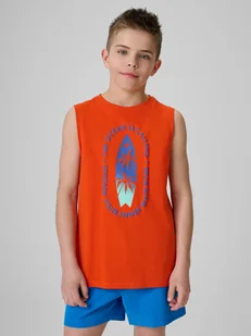 4F Koszulka bez rękawów regular z nadrukiem chłopięca - czerwona 164 (13-14 lat)