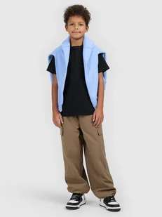 Koszulka dla chłopaka - CECHY: gramatura 160 gsm – lekka i przewiewna struktura materiału idealna na cieplejsze dni zakres rozmiarów 122-164 – dostosowany do potrzeb młodszych użytkowników krój regular – standardowe dopasowanie zapewniające komfort noszenia standardowy fason do bioder – uniwersalna długość odpowiednia na co dzień wykonana w 100% z bawełny – gwarancja miękkości, trwałości i naturalnego komfortu jednolita kolorystyka – łatwe dopasowanie do różnych stylizacji dzianina single jersey – gładka i przyjemna w dotyku powierzchnia okrągły dekolt z lekkim ribowaniem – klasyczne wykończenie zwiększające trwałość kształtu T-shirt bez nadruku chłopięcy idealnie sprawdzi się jako element zarówno casualowych, jak i sportowych stylizacji na co dzień. Posiada regularny krój, który wygodnie dopasowuje się do sylwetki nie krępuje ruchów w trakcie aktywności oraz standardową długość sięgającą do linii bioder. Splot single jersey z jednostronną gładką powierzchnią sprawia, że koszulka jest elastyczna i komfortowa w noszeniu. Koszulka z krótkim rękawem chłopięca dzięki gramaturze 160 gsm jest miękka w dotyku i dobrze się układa.
