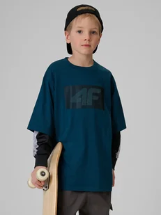 Chłopięcy T-shirt 4F – luźny fason z nadrukiem z przodu