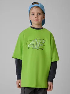 4F T-shirt loose z nadrukiem chłopięcy - zielony 158/164 (12-14 lat)