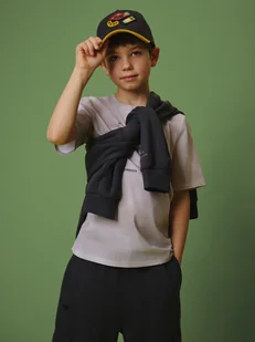 Ten chłopięcy t-shirt sprawdzi się wszędzie tam, gdzie liczy się swoboda i lekkość noszenia. Wykonany z lekkiej dzianiny bawełnianej, zapewnia trwałość, dzięki czemu sprawdzi się w codziennym noszeniu. Krój regular swobodnie leży na sylwetce, nie ograniczając ruchów podczas aktywności i zabawy.