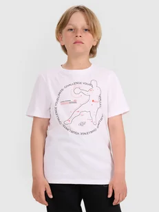 4F T-shirt regular z nadrukiem chłopięcy - biały 122 (6-7 lat)