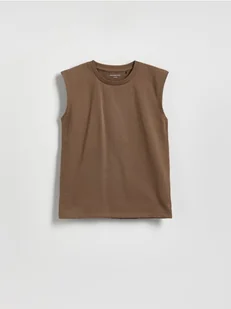 Reserved - Bawełniany t-shirt bez rękawów - brązowy