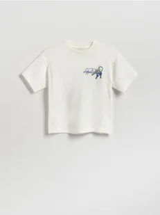 Reserved - Bawełniany t-shirt z nadrukiem - biały