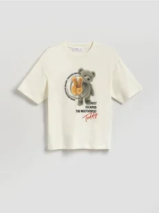 Reserved - Bawełniany t-shirt z nadrukiem - biały