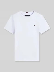 Dziecięcy t-shirt od Tommy Hilfiger Kids;efekt: jednolity kolor;Dopasowanie: krój regular fit;Szczegóły: przeszycie z logo;dekolt: okrągły dekolt;Rękaw: krótki rękaw;materiał: czysta bawełna