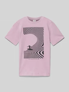 T-shirt dziecięcy s.Oliver RED LABEL;Czysta bawełna;Prosty krój;Jednolity kolor;Okrągły dekolt;Nadruk z motywem i napisem;Długość tyłu w rozmiarze S: 57 cm