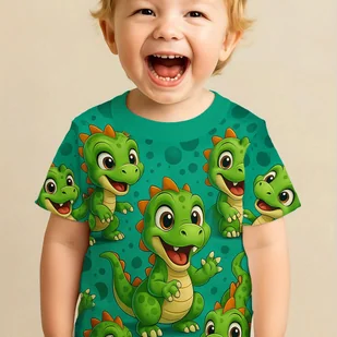 TEMU Koszulka dla Chłopców z Dinozaurem - 3D Druk z Uroczymi Wzorami, Miękka Letnia Koszulka z Krótkim Rękawem i Okrągłym Dekoltem, Idealna dla