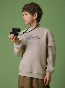 4F Bluza dresowa loose bez kaptura chłopięca - beżowa 134/140 (8-10 lat)