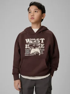 4F Bluza dresowa loose z kapturem chłopięca - brązowa 164 (13-14 lat)