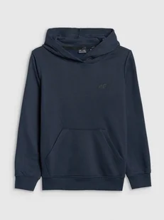 Bluza z kapturem 4F chłopięca - CECHY: gramatura 240 gsm – optymalna grubość zapewniająca ciepło i komfort zakres rozmiarów 122-164 – dopasowanie do różnych sylwetek jednostronnie czesane wnętrze – dodatkowa warstwa ciepła i miękkości krój regular – wygodne dopasowanie bez nadmiernego przylegania standardowy fason – długość sięgająca do bioder dla optymalnej osłony 78% bawełny – miękka, trwała i przyjemna w dotyku tkanina 22% poliestru – zwiększona wytrzymałość i odporność na zużycie jednolita kolorystyka – uniwersalny design pasujący do wielu stylizacji dzianina single jersey – gładka i miękka w dotyku struktura dekolt ze zintegrowanym kapturem – dodatkowa osłona przed chłodem mankiety ze ściągaczem – lepsze dopasowanie i komfort noszenia nadruk z logotypem z przodu – sportowy akcent podkreślający styl kieszeń kangurka – praktyczne miejsce na drobiazgi i ogrzanie dłoni wkładana przez głowę – wygodna i szybka w zakładaniu dół ze ściągaczem – lepsze dopasowanie i ochrona przed chłodem Przydatne poradniki: Jak prać odzież i obuwie sportowe? Bluza dresowa chłopięca nierozpinana z kapturem idealnie sprawdzi się jako element zarówno casualowych, jak i sportowych stylizacji na co dzień. Posiada krój regular, który wygodnie dopasowuje się do sylwetki. Splot single jersey z jednostronną gładką powierzchnią sprawia, że jest ona elastyczna i komfortowa w noszeniu.