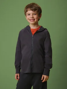 Ta chłopięca bluza dresowa została uszyta z miękkiej dzianiny o gładkiej i sprężystej strukturze, która zapewnia komfort podczas codziennych aktywności. Materiał dobrze układa się na sylwetce i sprawdza się w ruchu. Zintegrowany kaptur stanowi dodatkową osłonę, a dwie otwarte kieszenie z przodu pozwalają ogrzać dłonie lub przechować drobiazgi. Raglanowe rękawy wspierają swobodę ruchów podczas zabawy, a krój regular i długość do bioder gwarantują wygodne dopasowanie.