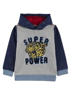 Nierozpinana bluza z kapturem marki Kanz to wygodna i stylowa propozycja dla aktywnych dzieci. Szara baza została uzupełniona granatowymi rękawami i kapturem, a kontrastowe niebieskie ściągacze dodają jej energii. Przód bluzy zdobi nadruk geparda oraz napis "Super Power", który podkreśla jej dynamiczny charakter. Kolor: szara bluza z granatowymi rękawami i kapturem Ściągacze w intensywnym niebieskim kolorze Nadruk geparda i napis "Super Power" Materiał: 100% bawełna Marka Kanz – komfort, styl i mocny akcent graficzny