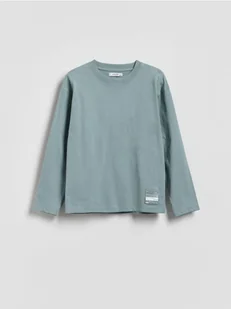 Reserved - Bawełniany longsleeve z nadrukiem - ciemny turkus