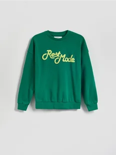 Reserved - Bluza oversize z nadrukiem - jasnozielony