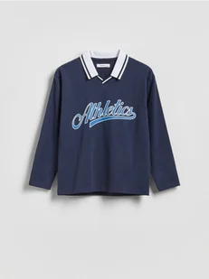 Reserved - Longsleeve z kontrastowym kołnierzykiem - granatowy