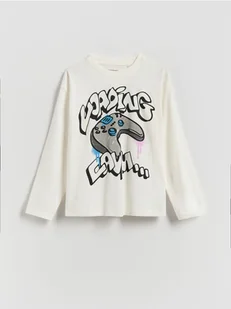 Reserved - Longsleeve z nadrukiem - złamana biel