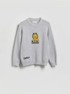 Sweter o swobodnym fasonie, wykonany z bawełnianej dzianiny.