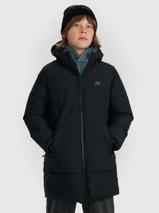 Dziecięcy płaszcz 4F z membraną NeoDry – ciepło i ochrona w zimne dni Membrana NeoDry 5000/3000 chroni przed lekkim deszczem i śniegiem Ocieplina poliestrowa zapewnia optymalny komfort cieplny na co dzień Hydrofobowa powłoka ogranicza wchłanianie wilgoci i zwiększa ochronę Gładka podszewka poliestrowe wnętrze ułatwia zakładanie i noszenie Zintegrowany kaptur z elastycznym wykończeniem i miękką wyściółką Wysoki kołnierz chroni szyję przed wiatrem i chłodem Mankiety bez regulacji proste wykończenie dla wygody dziecka 2 kieszenie boczne zamykane na zamek, idealne na drobiazgi Zamek z plisą przeciwwiatrową jednokierunkowy suwak chroniony od wewnątrz Elementy odblaskowe zwiększają widoczność i bezpieczeństwo po zmroku Trwały materiał syntetyczny łatwy w pielęgnacji i odporny na codzienne wyzwania Wygodny krój regular komfortowo układa się na dziecięcej sylwetce Długość do kolan dodatkowa ochrona przed chłodem i wiatrem Płaszcz zimowy chłopięcy – funkcjonalna ochrona na co dzień Idealny do szkoły i miejskich aktywności. Membrana NeoDry 5000/3000 chroni przed lekkim deszczem i wspiera odprowadzanie wilgoci, a poliestrowa ocieplina zapewnia ciepło bez zbędnego obciążenia. Przedłużony krój do kolan i hydrofobowa impregnacja zwiększają ochronę w chłodniejsze dni. Kaptur z elastyczną wyściółką i wysoki kołnierz skutecznie osłaniają przed wiatrem. Kurtka ma 2 kieszenie zapinane na zamek oraz rękawy z mankietami bez regulacji.