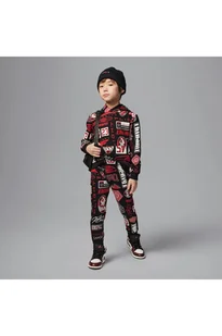 Ten dwuczęściowy zestaw z nadrukiem jest wykonany z delikatnej w dotyku dzianiny z mieszanki bawełny i poliestru, która jest gładka na zewnątrz i miękka po stronie wewnętrznej. To idealny strój do codziennej zabawy. Bluza z kapturem ma luźny krój, który ułatwia noszenie z innymi warstwami odzieży, oraz kieszeń przednią do przechowywania drobiazgów. Pasujące spodnie mają elastyczny pas dający wygodne dopasowanie, a zwężane nogawki ze ściągaczami w mankietach zapewniają wygodę i pozwalają wyeksponować buty Jordan. Zalety: Obie części mogą być noszone z innymi ubraniami z szafy Twojego dziecka.