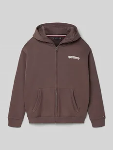 Bluza rozpinana dziecięca Tommy Hilfiger Teens;Efekt: jednolity kolor;Krój: Krój regular fit ;Zapięcie: Zamek błyskawiczny;Aplikacja: Napis z logo, wyhaftowane logo;Kształt kołnierza: