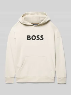 dziecięcy bluza z kapturem marki Boss;Model „Ivory”;efekt: jednolity kolor;Krój: krój regular fit;Aplikacja: nadruk z logo;kształt kołnierza: kaptur;Krój rękawa: