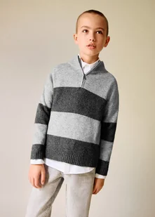 MANGO KIDS - Sweter w paski z półgolfem średni szary - 11-12 lata - Dzieci