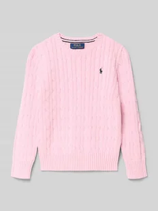 Sweter dziecięcy od Polo Ralph Lauren Teens;Efekt: jednolity kolor/z fakturą;Dopasowanie: Regular Fit;Wzór: Ścieg warkoczowy;Aplikacja: Wyhaftowane logo;Kształt kołnierza: