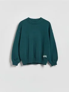 Reserved - Bawełniany sweter oversize - morski