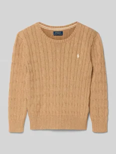 Sweter z dzianiny dziecięcy Polo Ralph Lauren Kids;Czysta bawełna;Krój regular fit;Ścieg warkoczowy;Wyhaftowane logo;Okrągły dekolt;Długość tyłu w rozmiarze 116: 46 cm;Długość rękawa w rozmiarze 116: 44 cm