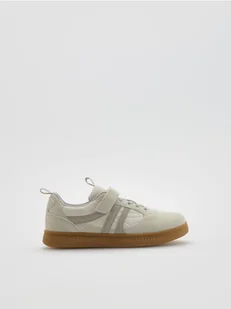 Trampki o klasycznym kroju, wykonane z łączonych materiałów.