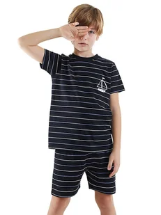 Piżama w kolorze granatowym - dekolt: okrągły - pas / ściągacz: elastyczny - krój: prosty - wzór: paski - nadruk: graficzny