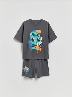Reserved - Bawełniana piżama z nadrukiem - ciemnoszary