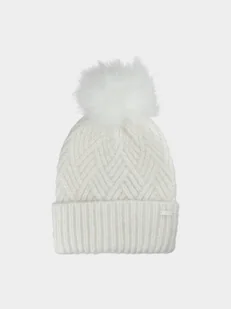 Czapka zimowa z pomponem dziewczęca idealnie sprawdzi się nie tylko jako zimowe akcesorium, ale także jako element sportowych stylizacji podczas aktywności na świeżym powietrzu w chłodne dni. Posiada klasyczny fason typu beanie. Czapka na zimę jest wykonana z materiału syntetycznego, który zapewnia trwałość i jest łatwy w pielęgnacji. Czapka dla dziewczynki nie jest ocieplana. Na czubku znajduje się pompon ze sztucznego futerka.